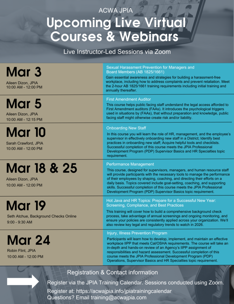Registration is now closed for the 2025 ACWA JPIA Training Conference. Contact training@acwajpia.com with any questions.